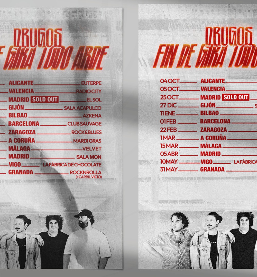 Este proyecto se centra en la dirección artística de la banda asturiana Drugos, con el desarrollo de su universo visual a través del diseño de portadas y carteles. El trabajo busca acompañar la identidad musical del grupo mediante una propuesta gráfica coherente y reconocible.
