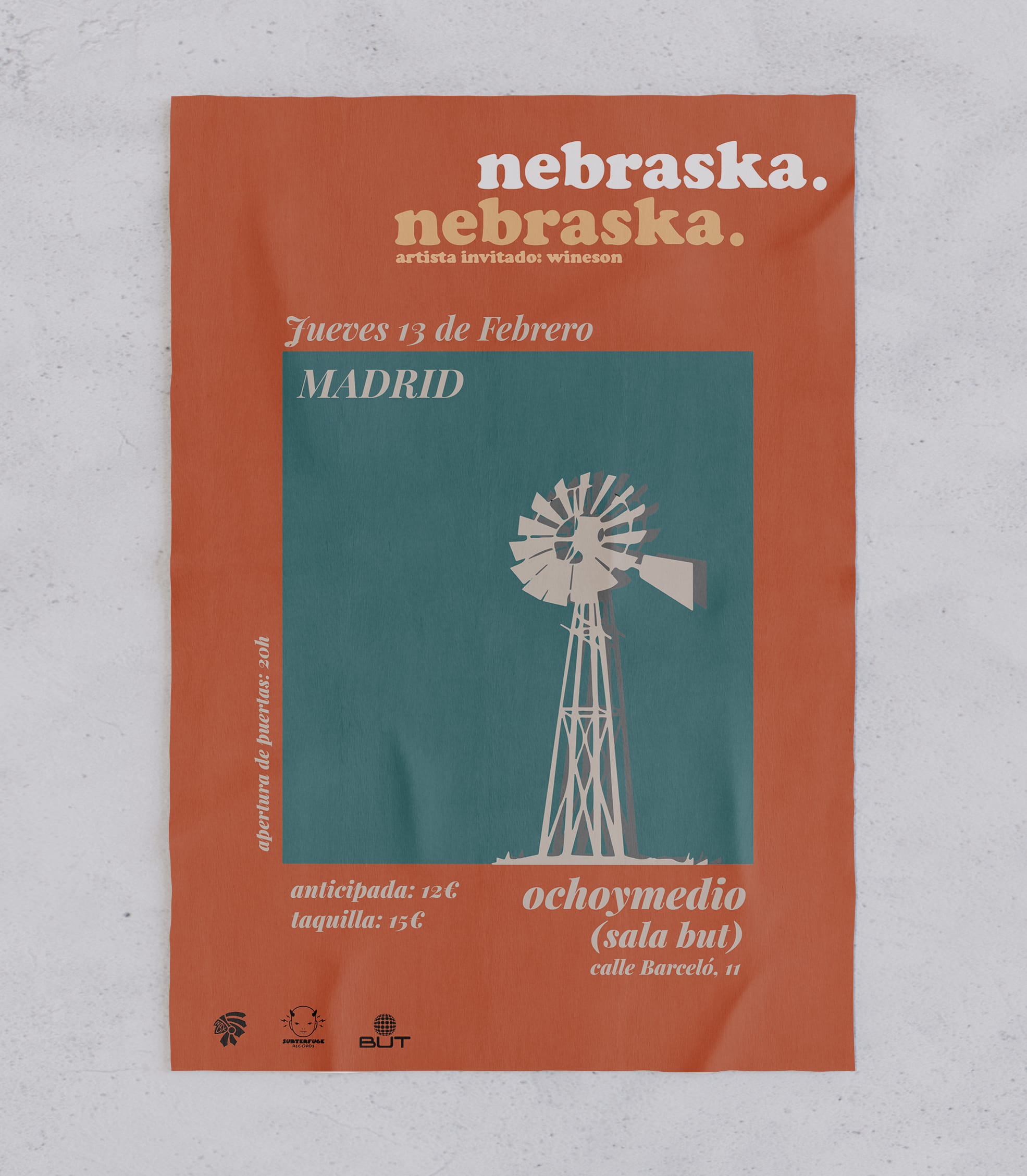 Para la banda madrileña Nebraska desarrollamos una identidad visual con un lenguaje visual sólido y versátil. El proyecto abarcó el diseño del logotipo, la elaboración del brandbook y su aplicación en una página web y diversas piezas de merchandising. La web no está disponible actualmente.